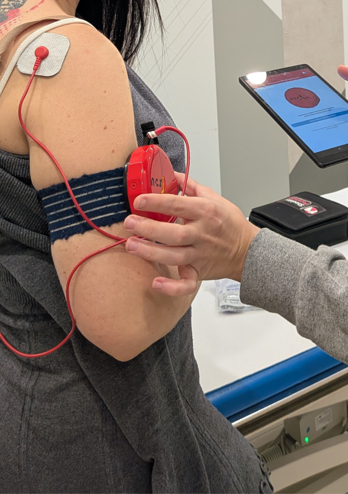 Attraverso elettrodi posti sulla spalla e sul complesso scapolo-omerale, il sistema stimola in modo mirato i muscoli periscapolari, i rotatori esterni e la cuffia dei rotatori, con l’obiettivo di ripristinare un’attivazione neuromuscolare equilibrata e controllata.